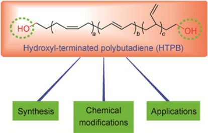 The main chain of HTPB is primarily cis-1,4 structured, with a small proportion of 1,2-vinyl units. The terminal hydroxyl groups can react with isocyanates (–NCO) to form a polyurethane network.